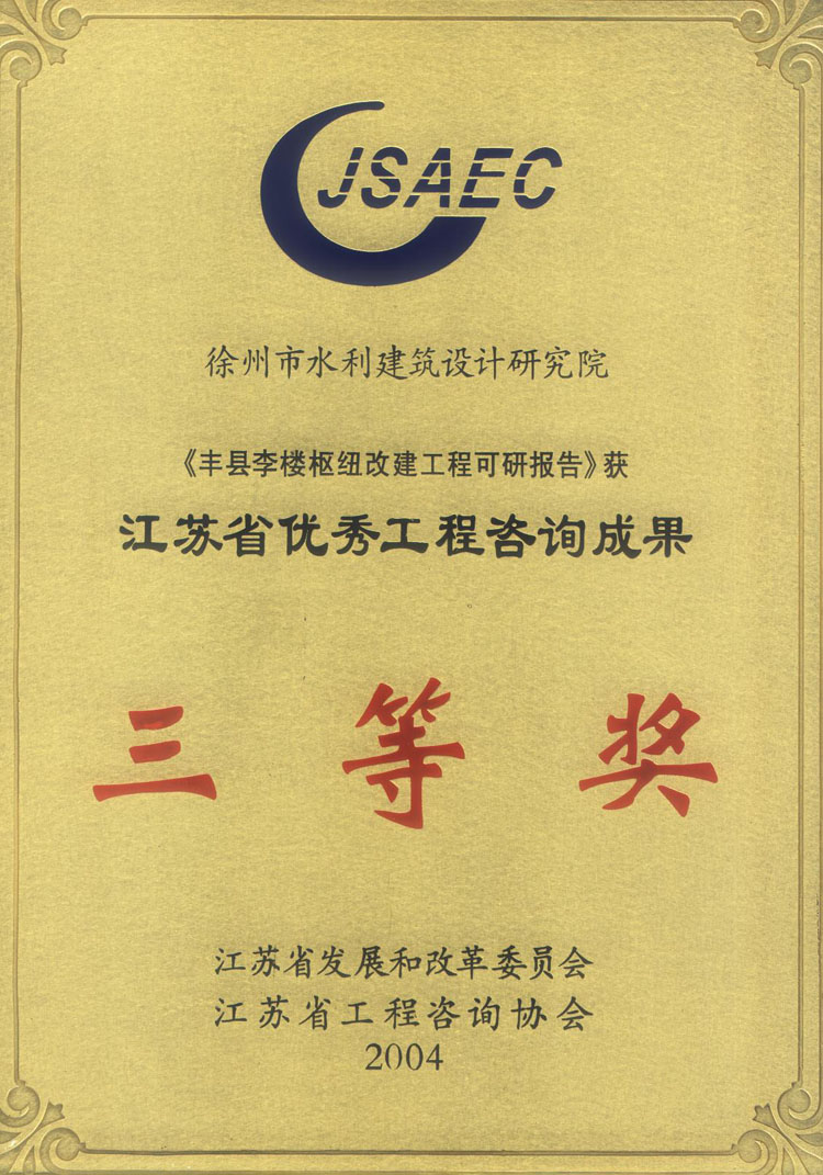 《豐縣李樓樞紐改建工程可研》省咨詢成果獎(jiǎng)(2004)