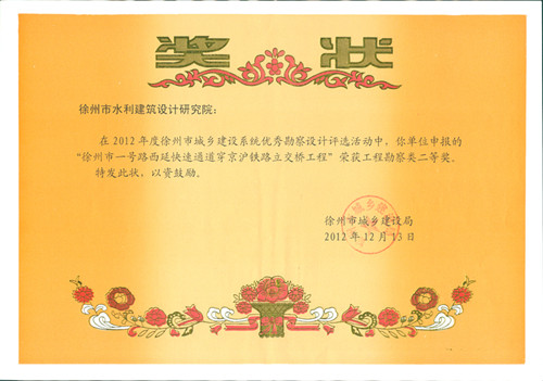 “徐州市一號路西延快速通道穿京滬鐵路立交橋工程”獲市工程勘察類二等獎