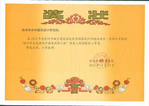 “徐州市云龍湖湖中路堤改橋工程”榮獲工程勘察類三等獎